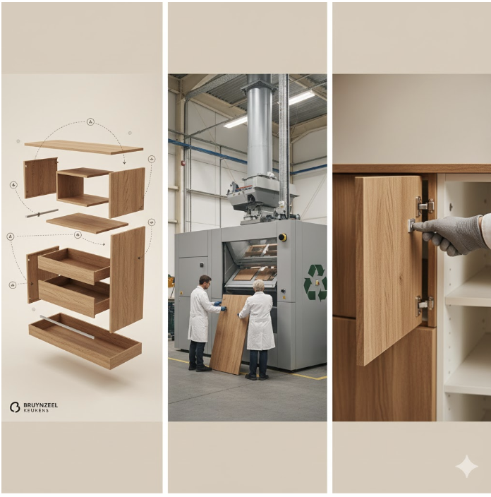 Wij laten precies zien hoe onze circulaire kastsystemen modulair circulair ontwerp in de praktijk brengen. Onze onderdelen zijn slim opgebouwd, waardoor panelen, lades en functionele onderdelen eenvoudig te vervangen of terug te brengen zijn. De dagen van een complete keuken weggooien behoren tot het verleden. In plaats daarvan kiezen we voor slim vernieuwen met een minimale afvalstroom. Dit systeem garandeert niet alleen een lange levensduur, maar maakt ook aanpassingen in de toekomst moeiteloos mogelijk zonder structurele sloop.